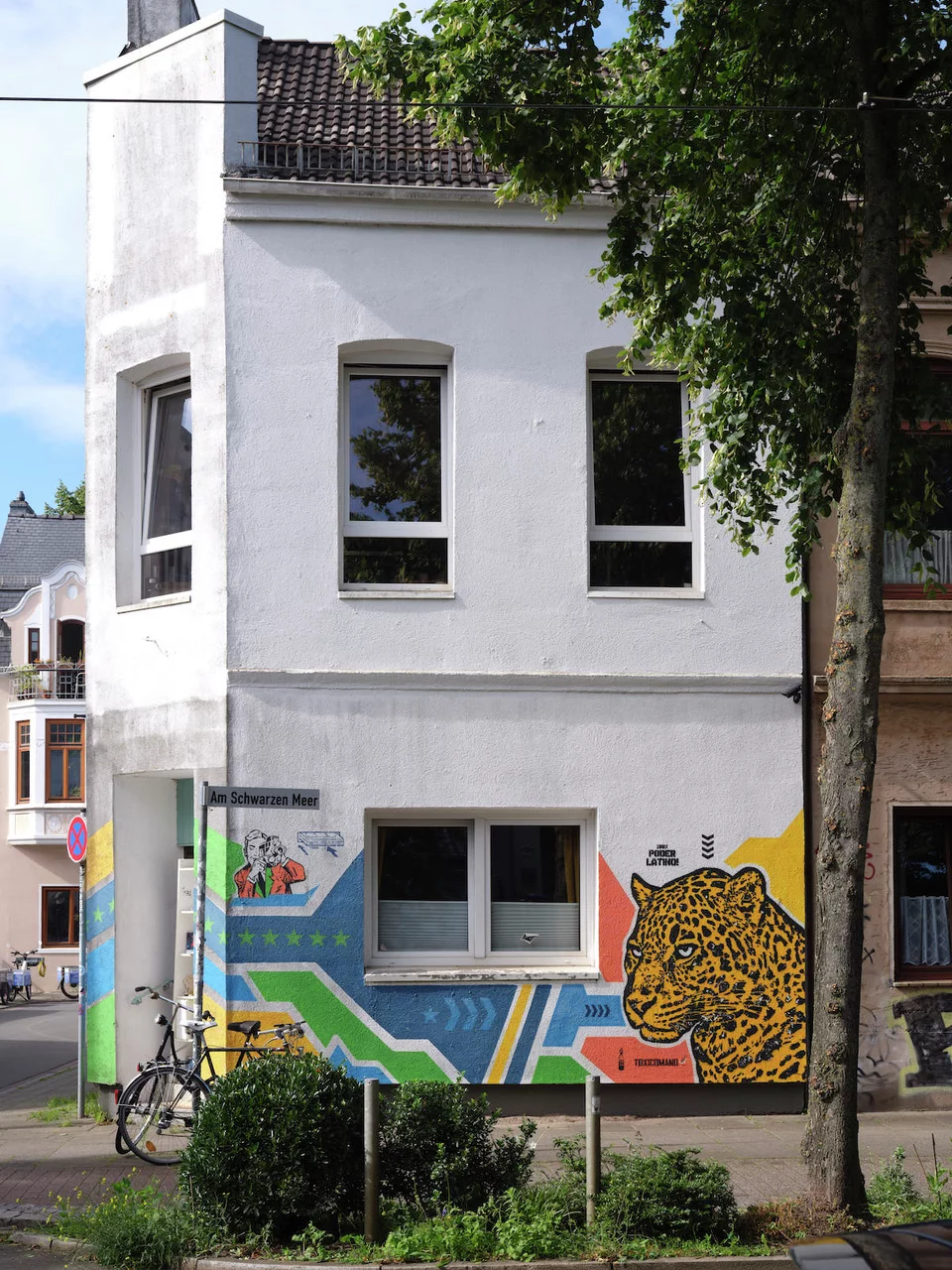 Das Fotoprojekt zeigt alle 150 Meter ein Bild eines Hauses und damit den Gesamtverlauf der Strecke durch die Stadt von Ost nach West. Es wird so getan, als wenn ein Mitfahrer alle 150 Meter ein Bild konzentriert für sich wahrnehmen und festhalten würde. Der Eindruck des Fahrens wird durch die ununterbrochene Fotoreihe wie auf einer Fahrt gezeigt. Das geschieht in Form eines Leporellos – also einer fortlaufenden ununterbrochenen Bildfolge.